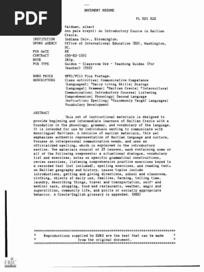 Ann Pale Kreyol An Introductory Course In Haitian Pdf French Language Vocabulary